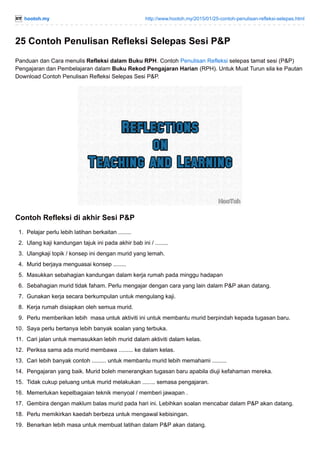 25 Contoh Penulisan Refleksi Selepas Ses