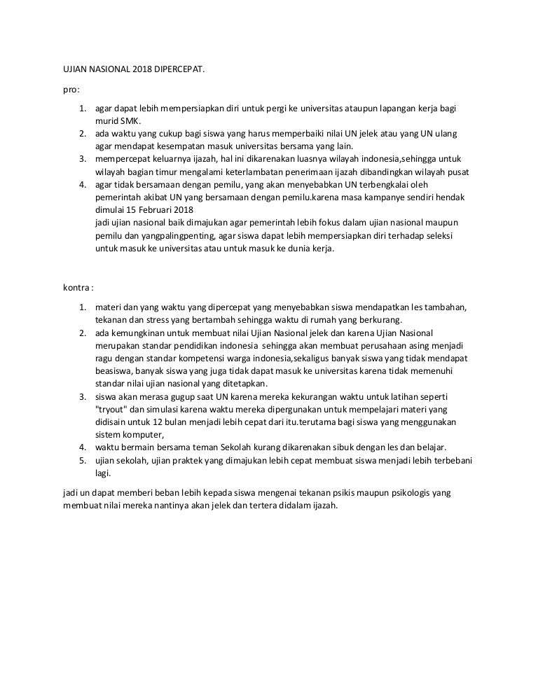 Contoh Teks Debat Ujian Nasional 2018 Dipercepat